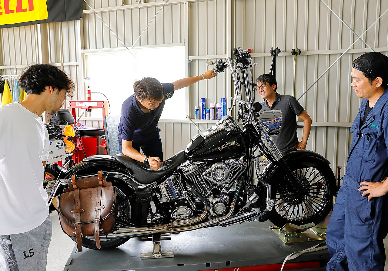 2022年には、バイク及び車の車検や整備、販売、買い取り、愛車のカスタムなどを手がける「プレジャーワークス」をオープン。スタッフが仕事にも人生にも本気で向き合っていけるよう、現場で支え、育てていくことを大切にしている。